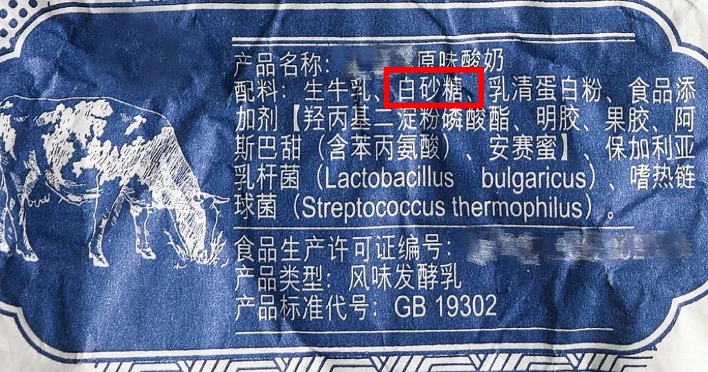 你如果试过自己做酸奶,就会发现一点糖不加的酸奶能酸倒后槽牙,所以大部分酸奶的配料表都会有白砂糖,而且还不少放——通常在配料表的第2/3位。