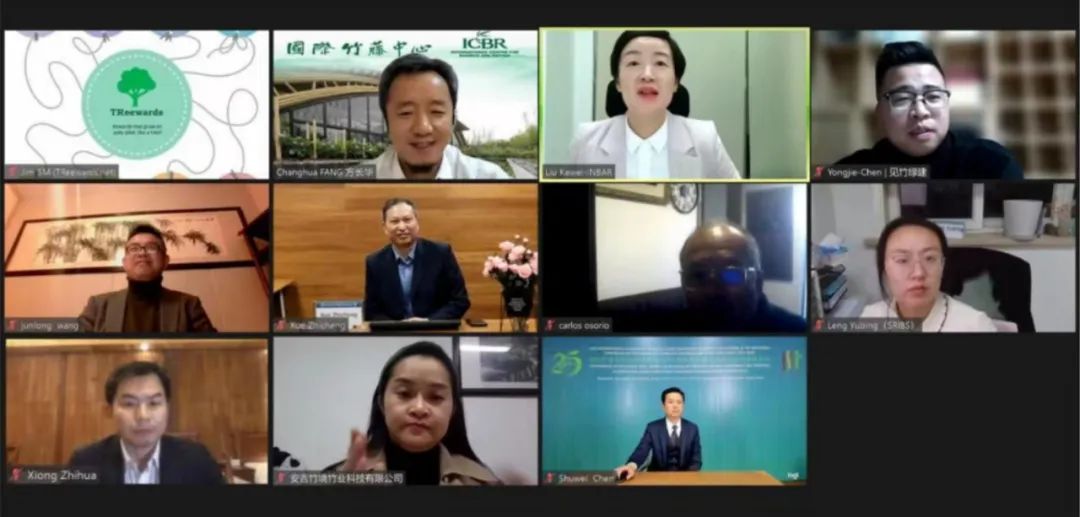基于今年8月国际竹藤组织与中国典型竹建材和竹建筑企业所开展的“中国竹建材和竹建筑企业发展调查研究项目”部分调查结果,洪雅竹元科技有限公司董事长陈述伟、安吉竹境竹业科技有限公司总经理王燕飞、赣州森泰竹木有限公司总经理熊振华、杭州邦博科技公司总经理王军龙、湖南桃花江竹材科技股份有限公司董事长薛志成、江苏见竹绿建竹材科技股份有限公司总经理陈永杰等六位企业家围绕企业家领导力、主营产品、市场推广、关键技术研发以及竹未来应用场景等方面分享了宝贵经验与见解,充分展示了中国竹建材和竹建筑企业群体的蓬勃发展现状、中国新型现代竹建筑项目的独特人文魅力,以及新型工业化竹建材产品的广阔市场前景。