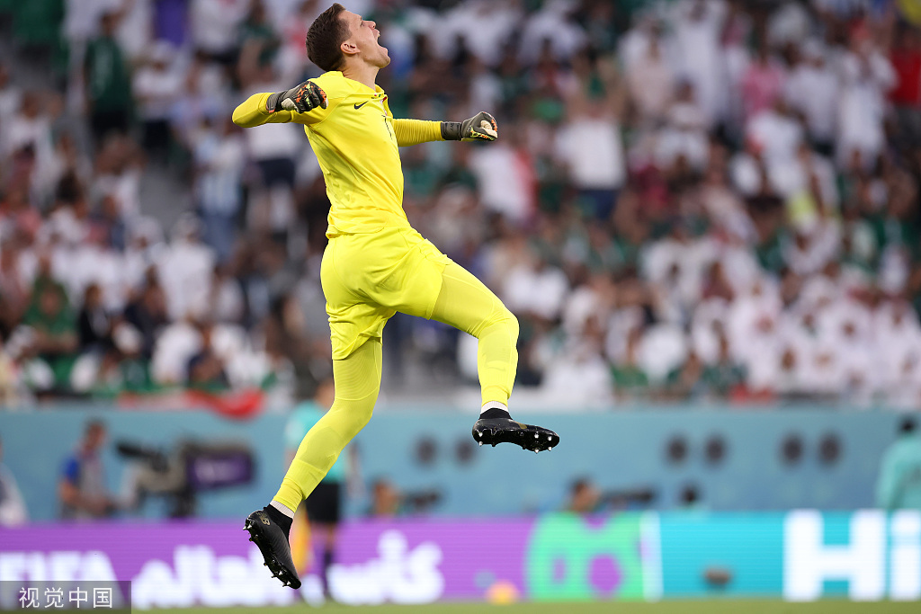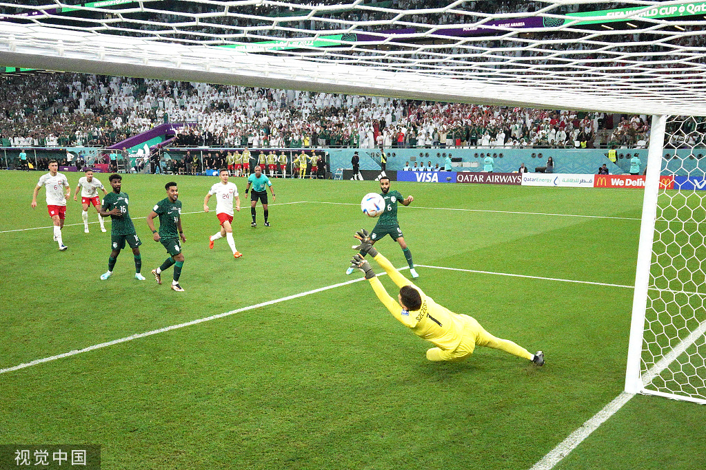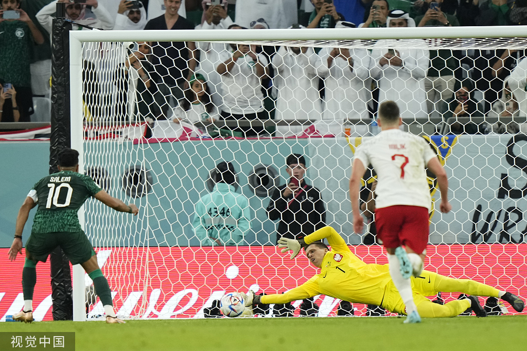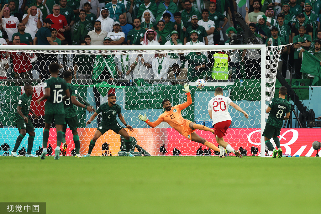 面对波兰队,沙特队在上半场一度占据优势,但却被波兰队利用反击破门。随后沙特队获得点球,波兰门将什琴斯尼发挥神勇,连续做出神扑。