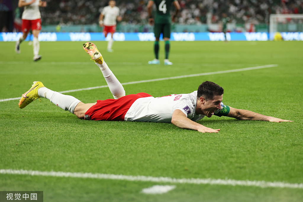 第81分钟,莱万多夫斯基抓住沙特队后卫拉球转身时的失误,抢断成功,形成单刀,打入了自己在世界杯上的第一个入球。