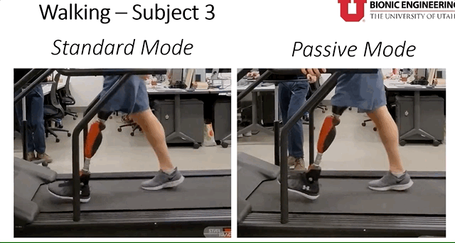 在此模式下,膝关节和踝关节假体的机械运动,和在微处理器控制下的效果很像,但现有的其他电动假肢都没有这种功能。