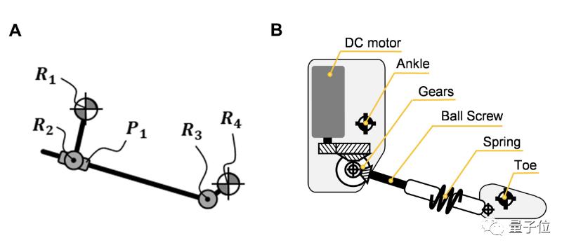 这个同时给脚踝和脚趾提供动力的装置,名曰欠驱动系统,意思是其输入量比要控制的量少。