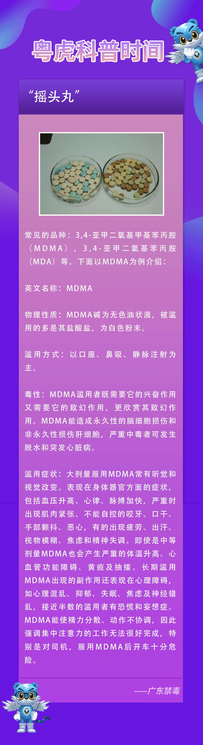什么是疯狂的“摇头丸”?摇头丸,是一种人工合成毒品,一般以 MDMA(3,4-亚甲基二氧甲基苯丙胺)、 MDA(4,5-亚甲基二氧基苯丙胺)、AM(苯丙胺)及 MAM(甲基苯丙胺)为主要有效成分。