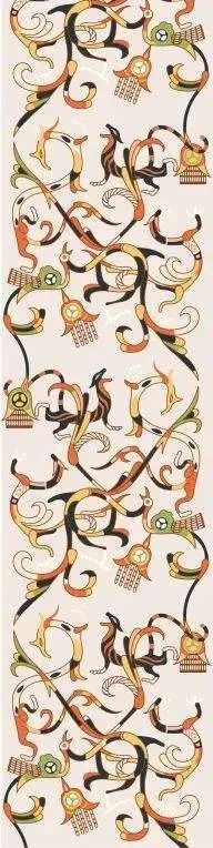 楚绣绣样以灵动的动物为主,其中具有代表性的有凤纹、龙纹、虎纹、鹿纹等纹样,辅之以卷草花卉纹样,这样动物、植物同处一画,温馨自然,表现出了自然界中的生机与和谐的场面,亲历楚人在现实生活中展现的高雅审美趣味和奔放不羁的热情,直面楚人狂放、自由生命的凤凰涅槃。楚人的生命活力,在这些线条中也得到了完美的展现。