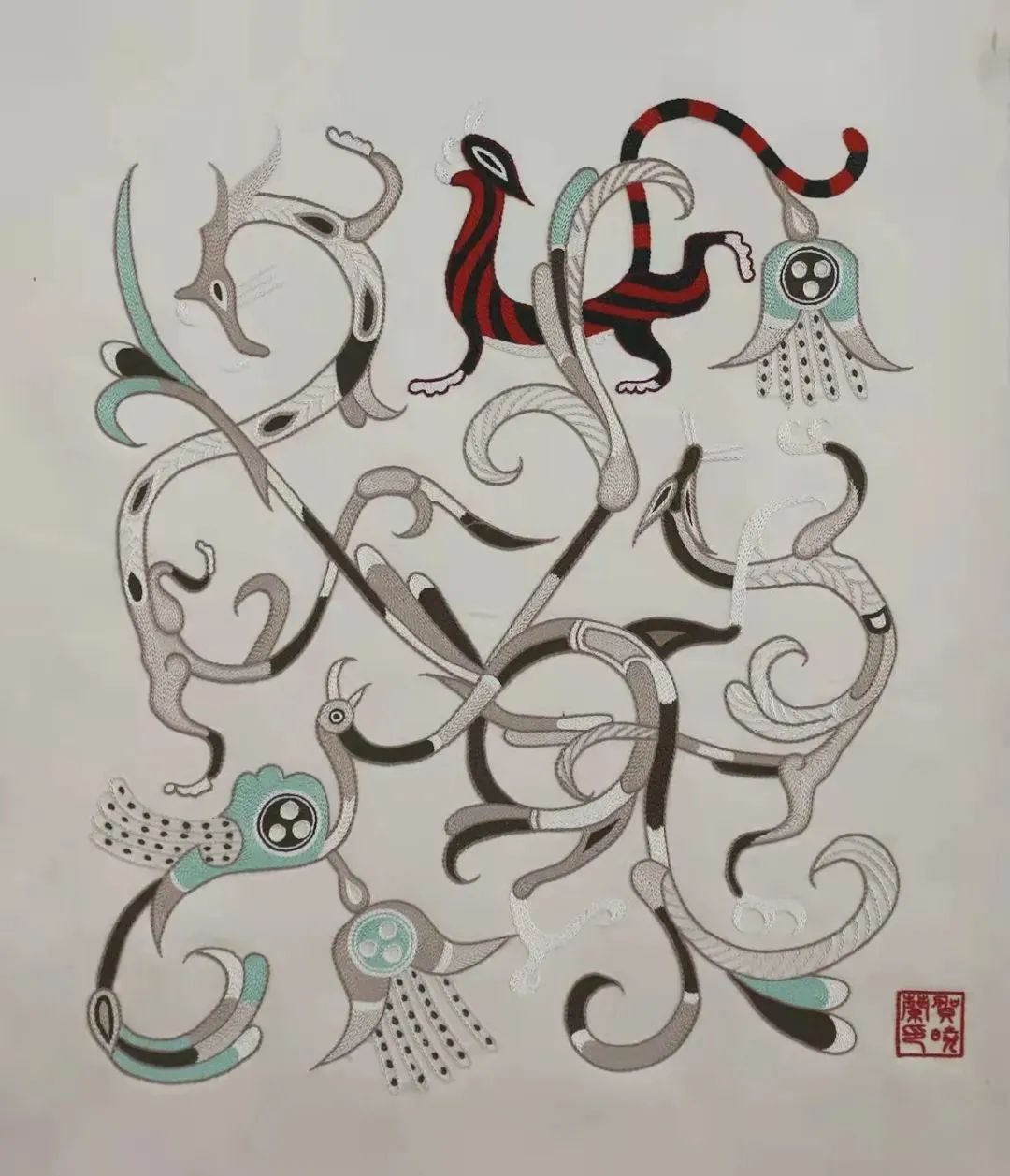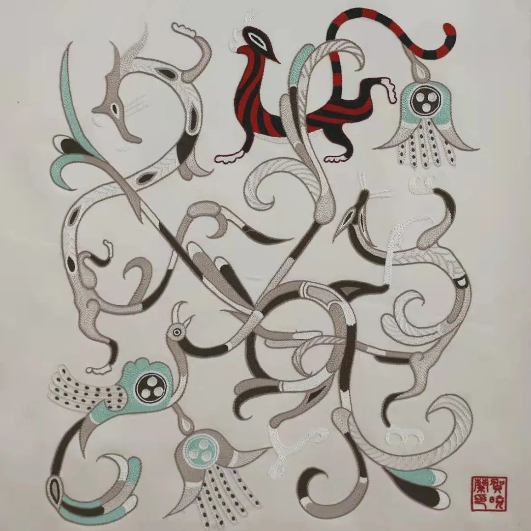 作者:非遗传承者贺晓兰龙凤虎纹楚绣卷轴