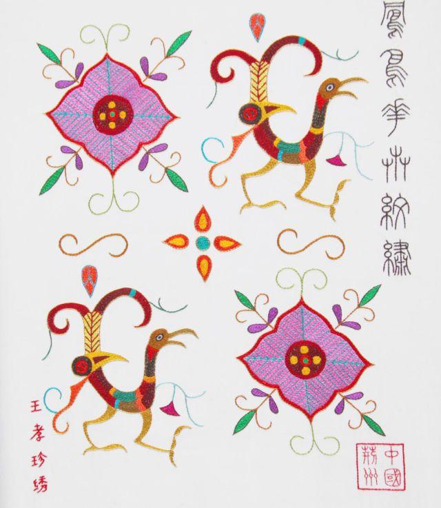 《凤鸟花卉纹绣》作者:楚绣省级非物质文化遗产代表性传承人王孝珍