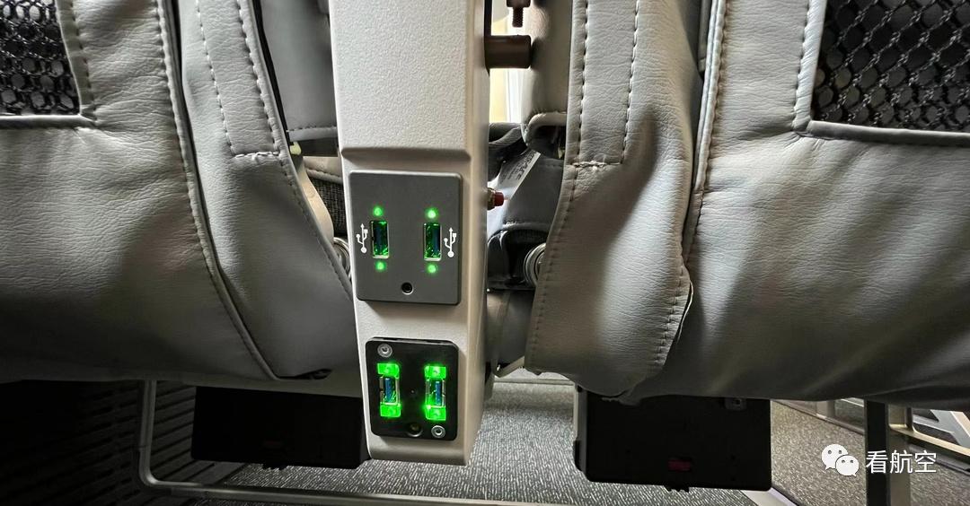E195-E2是E2系列飞机中最大的型号,最多可以容纳146名乘客。这架“工程狮”的客舱明亮宽敞,公务舱采用了交错式布局,令乘客能够拥有宽体机公务舱的舒适体验,每个人都可以通过舷窗看到外面的风景;经济舱是2+2布局,经过记者亲测,座椅宽大舒适,而且经济舱的每个旅客都有两个USB接口和电源口。