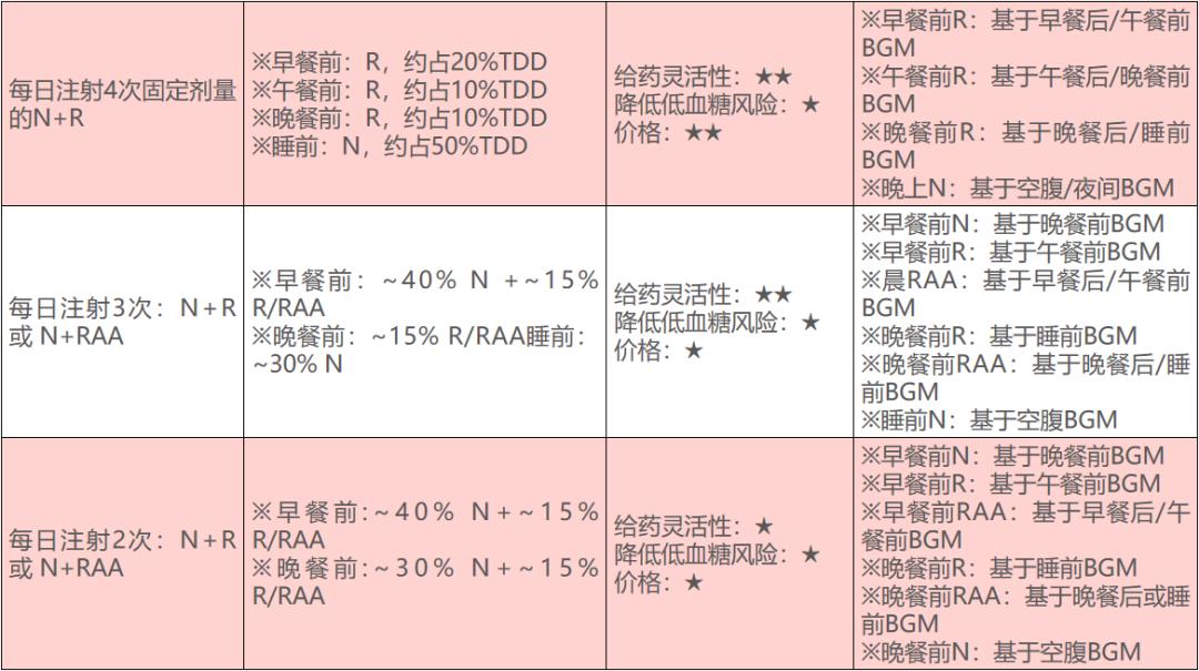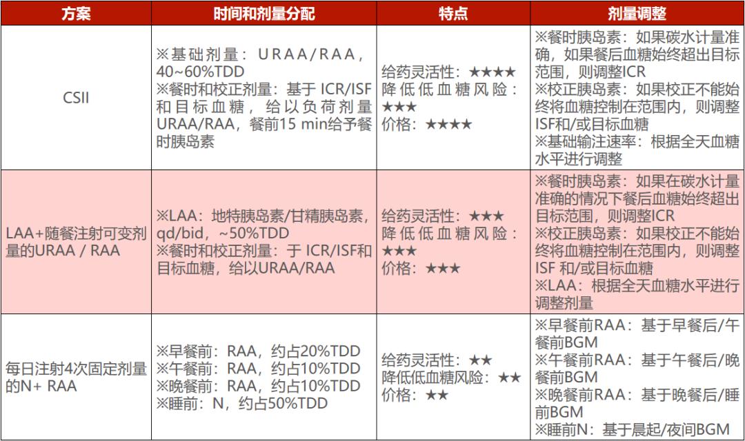 表1 :T1D患者的皮下胰岛素给药方案及其注意事项[9]