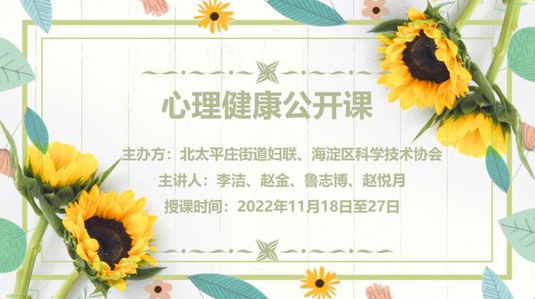 从“心”战“疫” 用心守护——北太平庄街道妇联组织开展“心理健康公开课”线上活动
