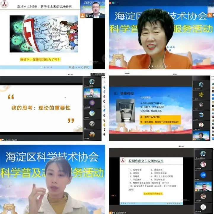 本轮疫情防控阻击战打响以来,为更好满足辖区居民的心理健康需求,缓解因疫情突发蔓延所引起的紧张焦虑等负面情绪,北太平庄街道妇联迅速行动、积极筹措,坚持抗“疫”与抗“抑”并举,11月18日至27日,联合海淀区科学技术协会共同举办了为期10天的“心理健康公开课”云讲座活动,助力辖区居民戴好疫情防控“心理口罩”,筑牢战“疫”心理防线,全力守护百姓“心灵绿码”。