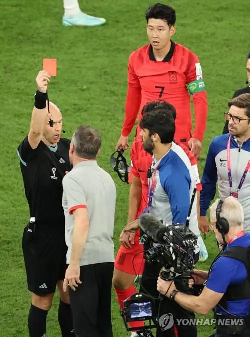 与此同时,情绪激动的韩国队葡萄牙籍主帅保罗·本托冲进球场,加入了球员的抗议行列,场面一度陷入混乱。最终,泰勒对本托出示了红牌。这意味着,下一场韩国队对阵葡萄牙队的出线关键之战,本托将无法在场边指挥。