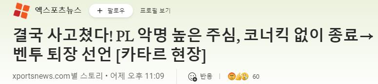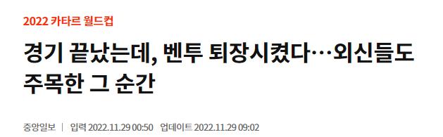 韩国《朝鲜日报》也提到了泰勒2019年对孙兴慜的那次判罚,称其与韩国队关系不太好。韩国《中央日报》网站发文称,此事引起了外媒的关注,“虽然10分钟的伤停补时已经过去了,但考虑到加纳队球员在补时阶段接连拖延比赛时间的情况,最后一个角球完全可以进行”。