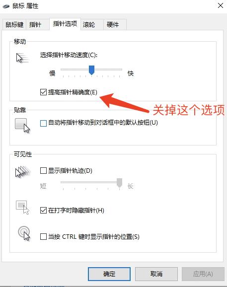电脑系统里,保证鼠标灵敏度设置到 6,同时关闭鼠标平滑。