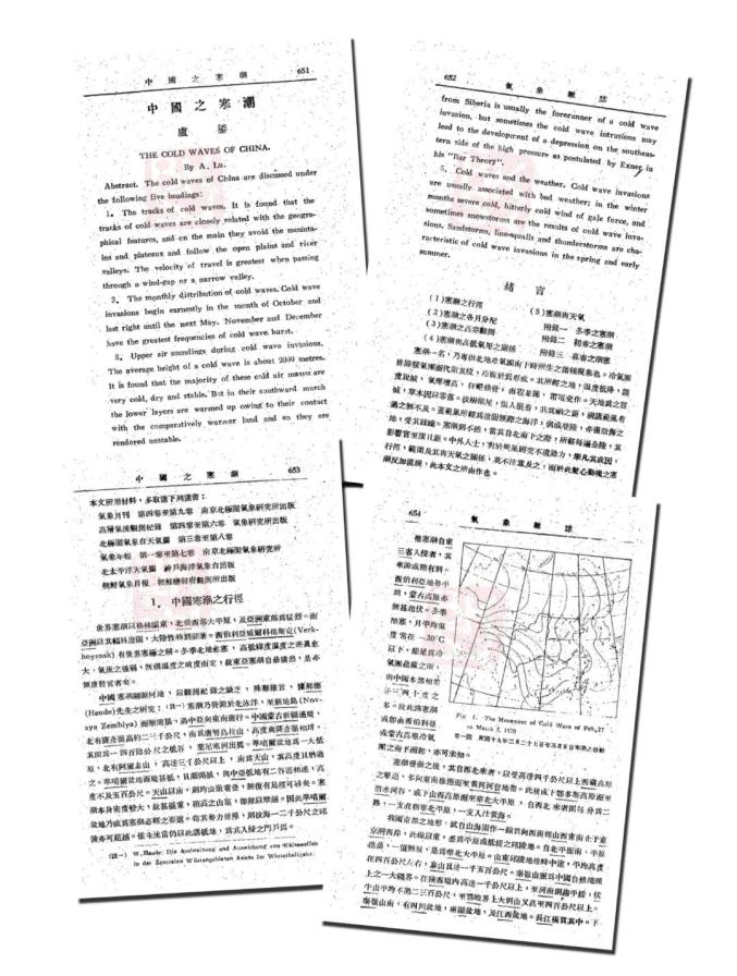 国内很早就开始研究寒潮及其影响。最早可追溯至上海徐家汇观象台的相关记录。图为1936年《气象杂志》(第十二卷第十二期)刊载的一篇题为“中国之寒潮”的论文,作者卢鋈