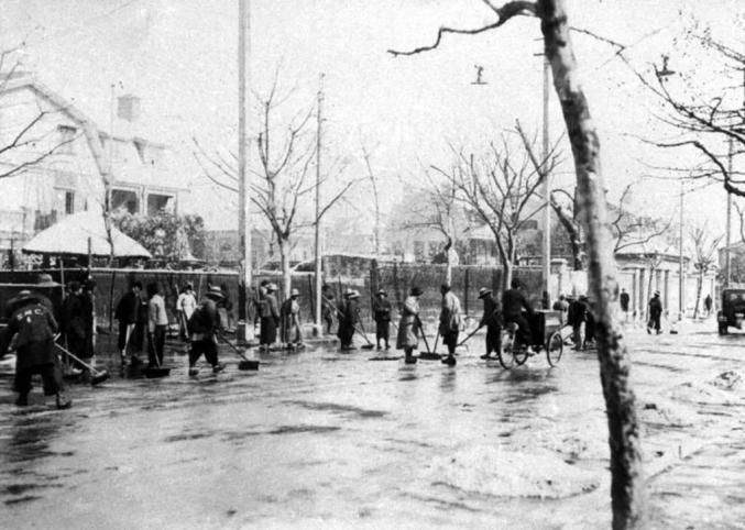 20世纪20年代,上海街头扫雪的路政工人图片来源 | virtual shanghai