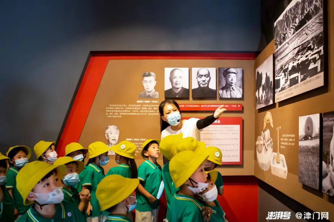2022年5月31日,平山县李慧幼儿园的老师在村史馆给孩子们讲平山革命史。