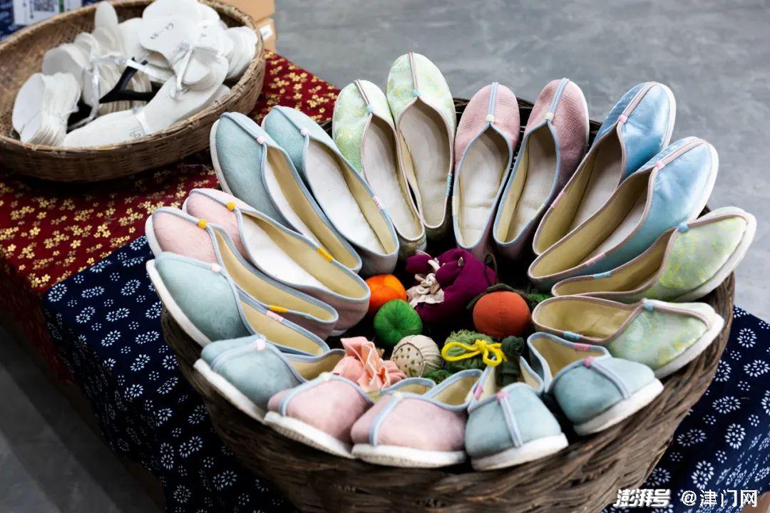 2022年5月21日,布艺展销厅,新品布鞋展示。