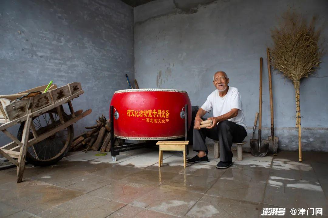 2022年7月10日,村民封金钟老人和他管理着的常山大鼓。逢年过节村里都会组织大家热闹热闹。