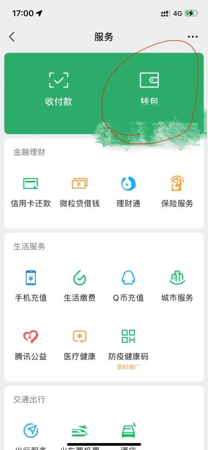 第二步进入服务菜单主界面后,选择“钱包”功能。