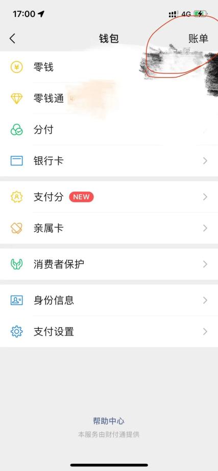 第三步在钱包功能主界面,选择顶部的“账单”功能。