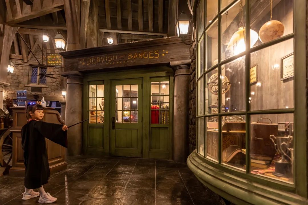 环球影城的哈利波特主题区丨东方IC简单而言,打造视觉系统做到两点就好——视觉吸引和视觉隔离。视觉吸引是让园区内游客看到的东西都与主题统一,包括但不限于招牌、照明、建筑、交通、植物、服装、环境。