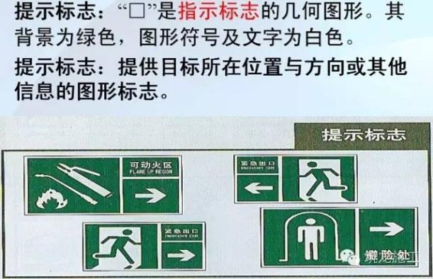 ☞绿色:注目性和视认性虽然太高,但绿色是新鲜、年轻、青春的象征,具有和平、永远、生长、安全等心理效用,所以绿色提示安全信息,含义是提示,表示安全状态或可以通行。车间内的安全通道,行人和车辆通行标志,消防设备和其他安全防护设备的位置表示都用绿色。