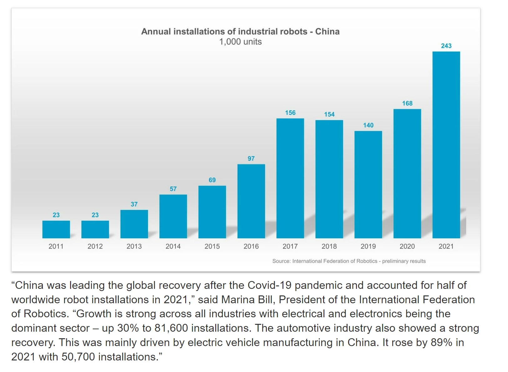 除此之外,国产工业机器人市场在全球市场中也举足轻重。