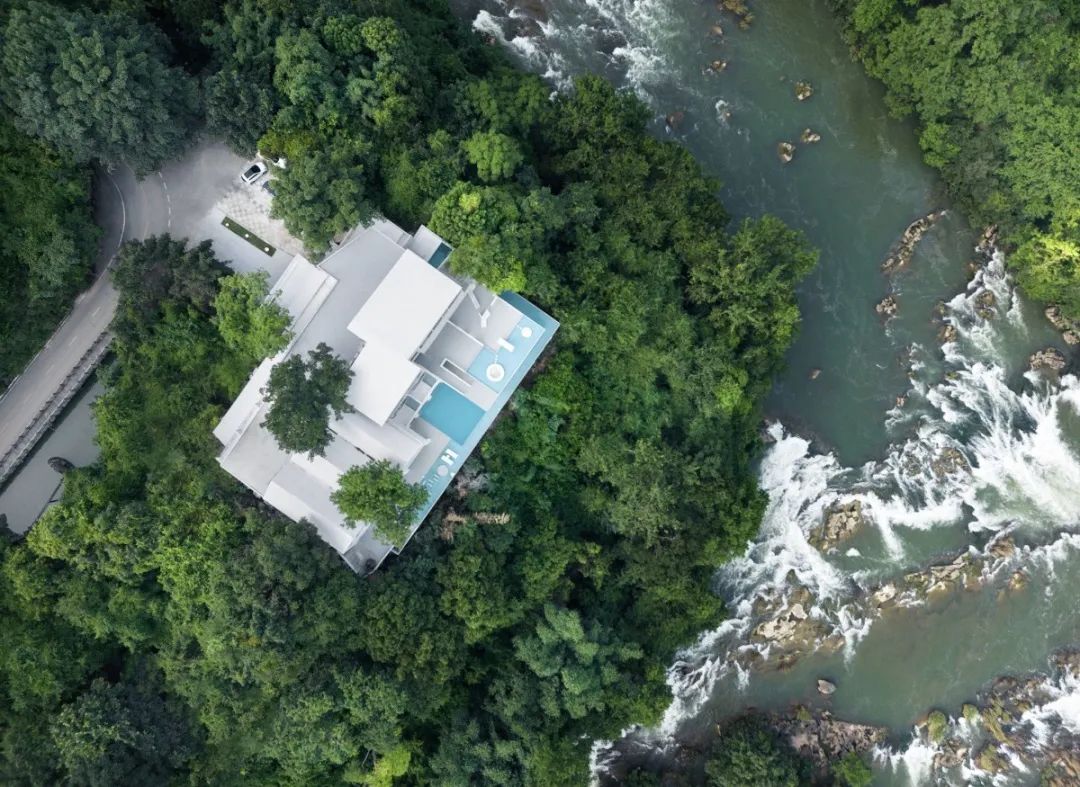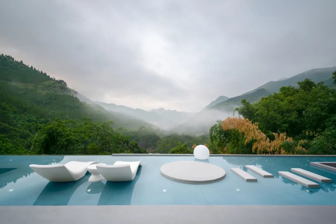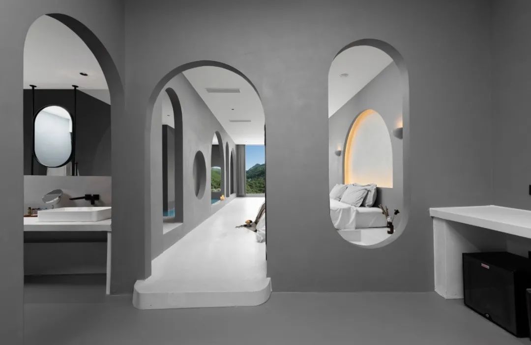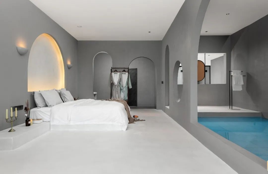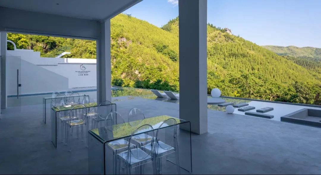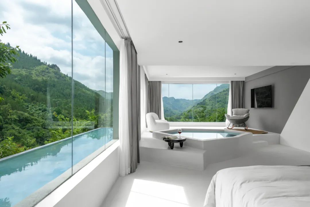 酒店以极简西班牙微水泥为设计风格,与千里山川百年大树为邻,万丈瀑布与虫嘶鸟鸣为伴,让每间客房都拥有独一无二的风格。