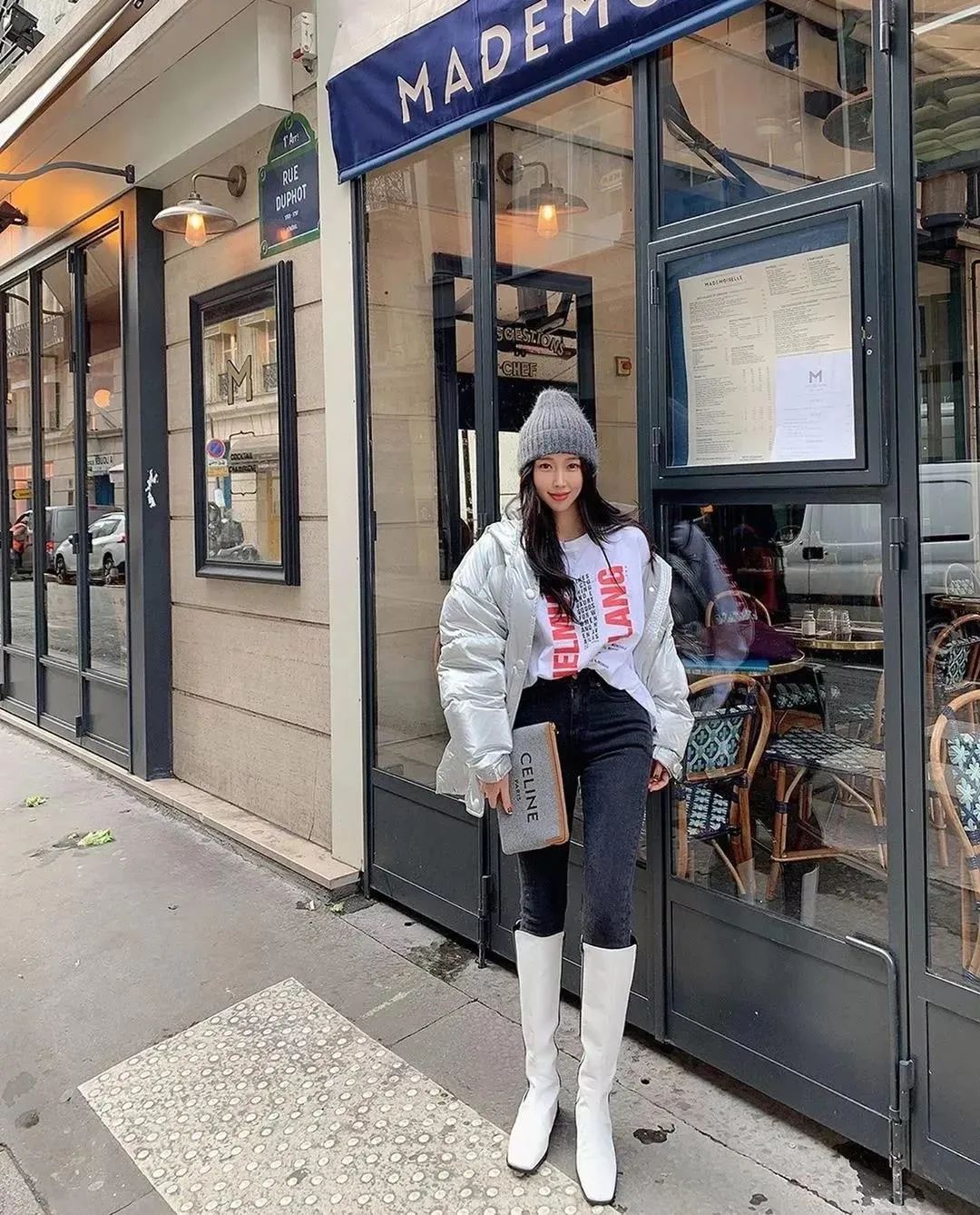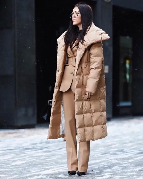选择亮面或者颜色比较艳丽的羽绒服,可以让人们在人群中一眼锁定自己,搭紧身裤时,配上膝下靴,营造“上松下紧”的视觉,显高又显瘦,高级感up!