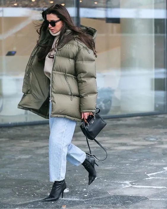 见过最多的羽绒服搭配,应该就是搭配紧身裤了,而小短靴也成了普通人的首选,显高又显瘦,不容易出错。