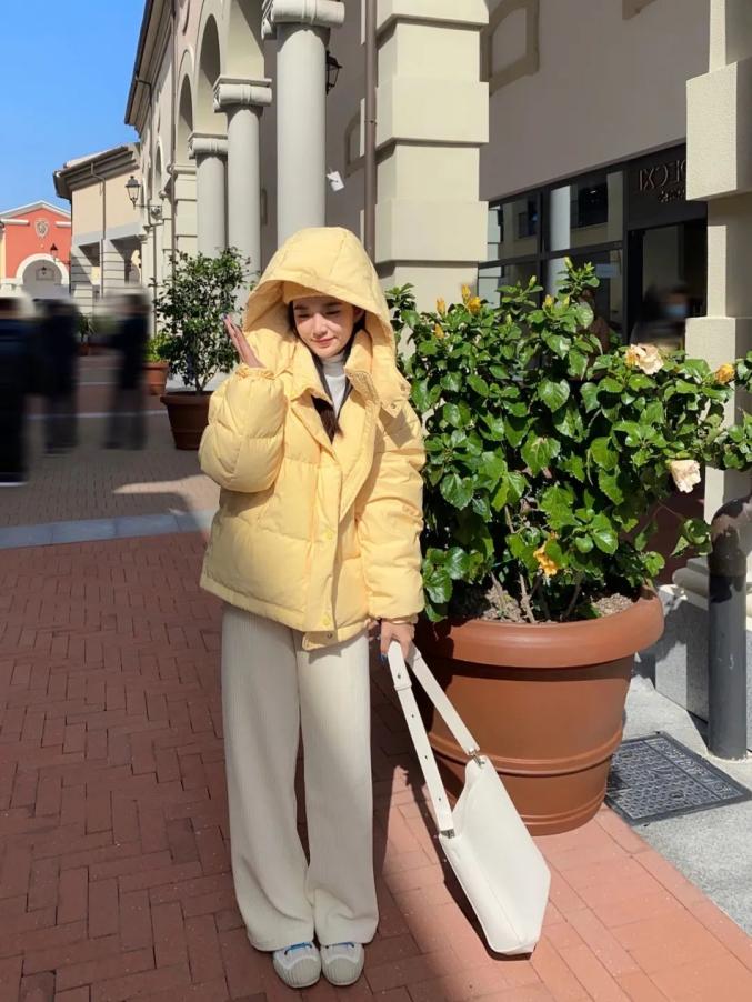 如果担心色彩搭配不当,像这样,羽绒服与内搭的顺色组合,轻松打造简洁高级感,更能显高。