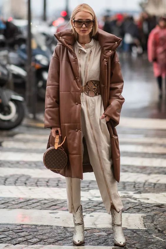 除了紧身裤,羽绒服+阔腿裤也是我们常见的穿搭,时尚icon们就总喜欢搭配“恨天高”,穿对简直就是酷飒精本人了。