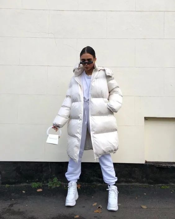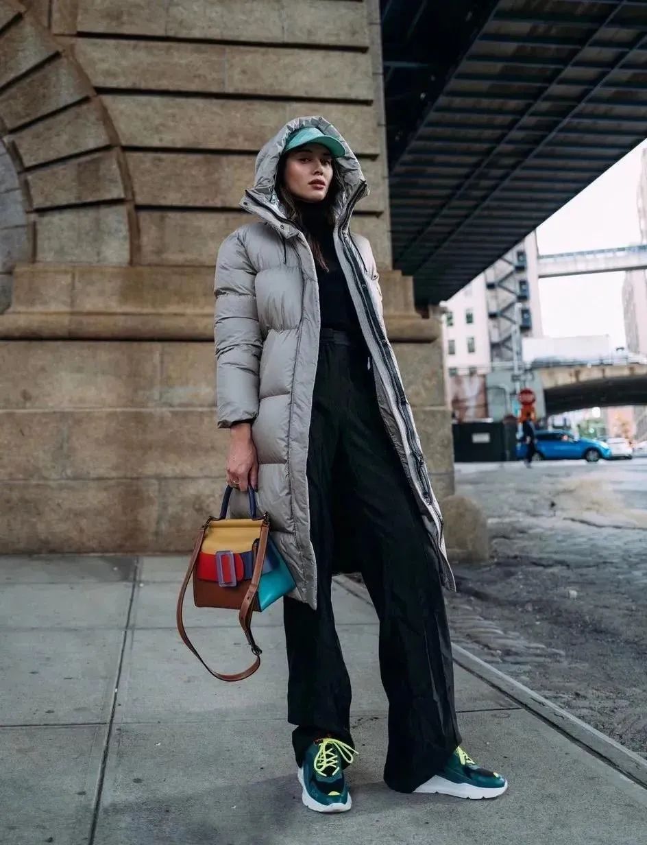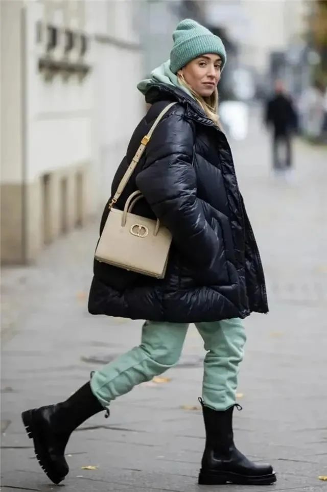 从疫情开始,「舒适」成了人们第一选择,比起修身T恤或者包臀裙,今年运动单品成了一大穿搭风格,它们与羽绒服搭配在一起,减轻行走时的“不便”,让它多一分亲和力。