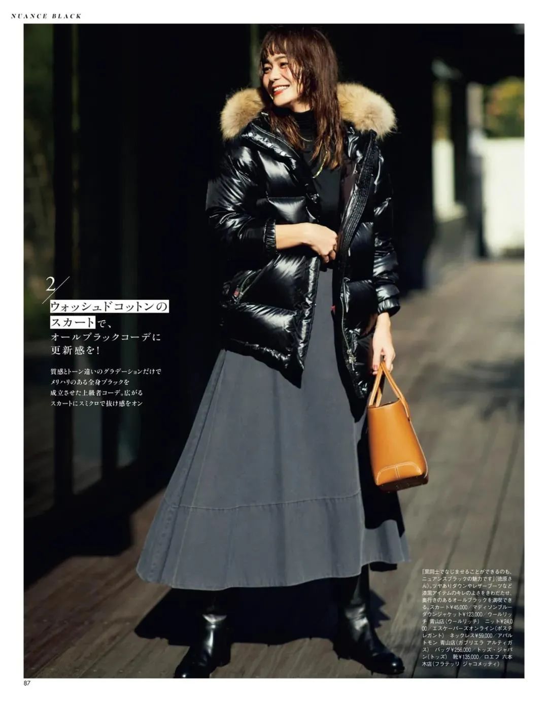 亮面的羽绒服偏中性,搭配A字半身裙,立刻温柔起来了~