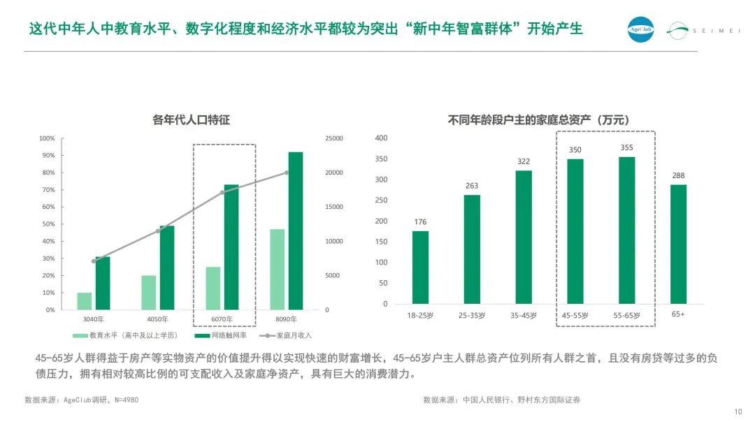 以“6275”人群为代表的当下中年人,经历了中国社会多次经济红利,并完成了较高的财富积累,其中,教育水平、数字化程度和经济水平都较为突出的“新中年智富群体”开始产生。
