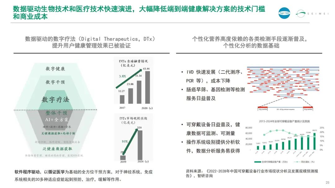 针对新中年智富群体的科学的健康解决方案,可能涉及健康监测、健康评估、健康干预等多个维度。数据驱动生物技术和医疗技术快速演进,大幅降低“端到端”健康解决方案的技术门槛和商业成本。