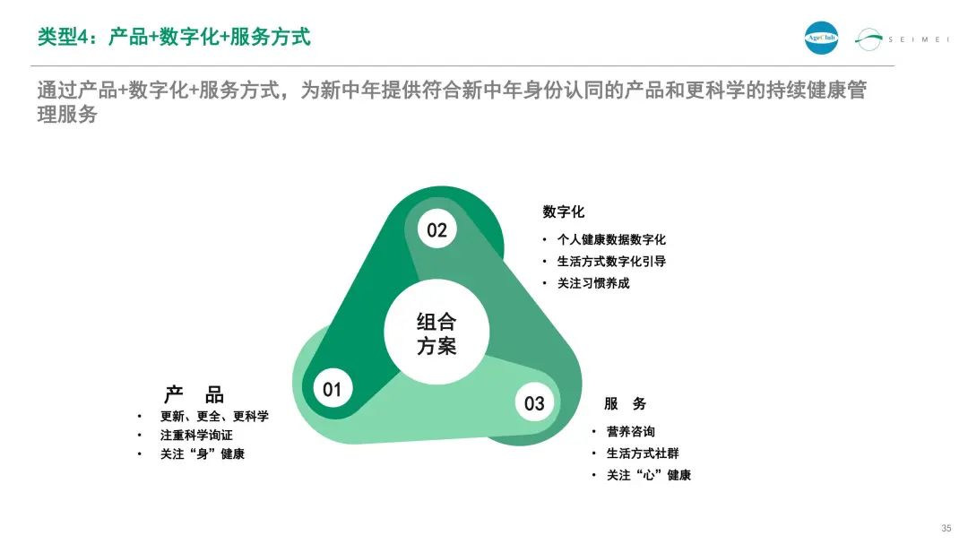 通过产品+数字化+服务的方式,能够为新中年提供符合新中年身份认同的产品和更科学的持续健康管理服务。