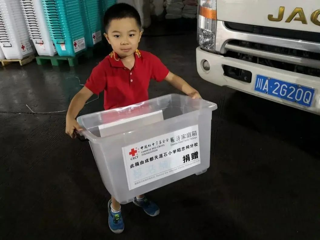 蔡浩楠,今年12岁,曾多次参加中国红十字基金会“赈济家庭箱”装箱志愿活动。2018年,他拿出自己的零用钱捐赠一只“赈济家庭箱”,并在父亲的帮助下第一次组装完成“赈济家庭箱”,后来这批家庭箱随中国红十字基金会“天使之旅·四川抗洪行动”送到了内江市资中县重龙镇灾区小朋友的手里。