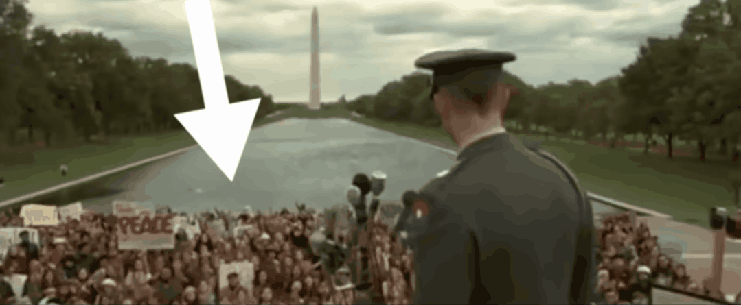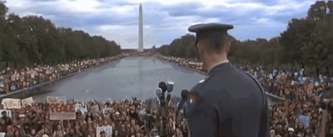 再比如阿甘在华盛顿发表演讲这一段,如果想要达到下面这个规模,那高低得到周杰伦演唱会的级别了。