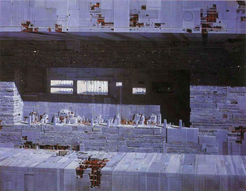 自此之后,在那个没有 CG 特效的年代,绘景技术就扛起来了科幻电影的大旗,帮制作团队省了大量的场景搭建的费用。