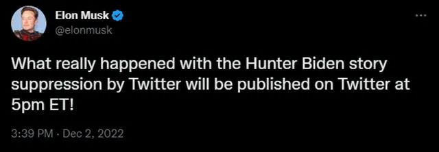 推特掩盖这一事件的决定成为了右翼关注的丑闻,推特新任首席执行官埃隆·马斯克此前承诺将跟进了解推特这一有争议的决定。于是便有了“推特文件”。