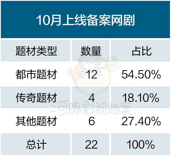原标题:《10月网剧上线备案:剧集数量同比下降12%,都市题材占比54%》