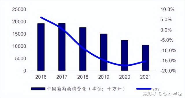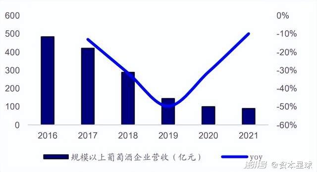 同时,2021年规模以上葡萄酒企业营收为90.3亿元,较2016年减少81.4%,期间CAGR为-28.5%。换句话说,目前国内葡萄酒市场是一个减量市场,而非一个增量市场。