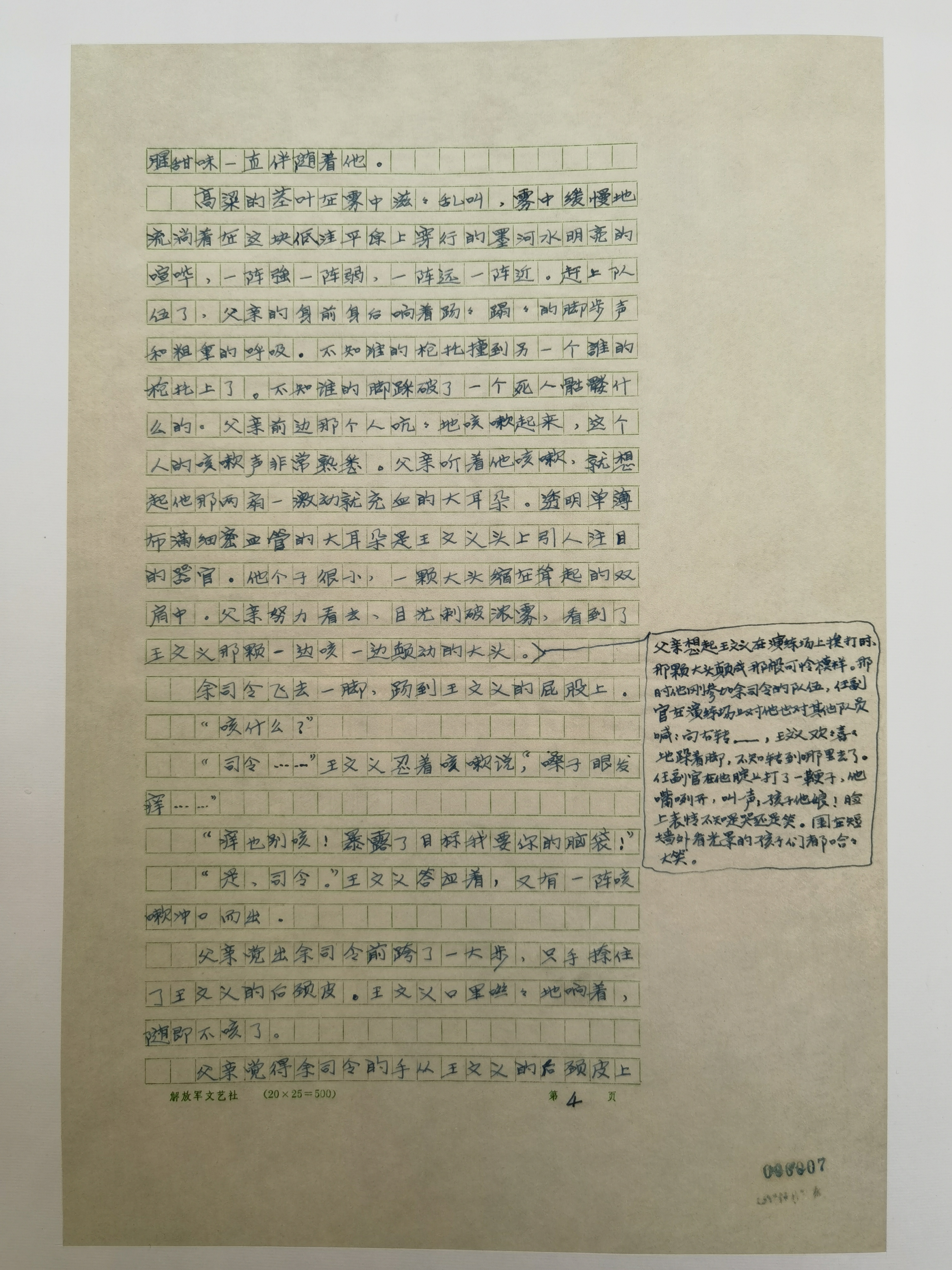 莫言在视频中提到了写于1985年的《红高粱》手稿。那个时候他正在原解放军艺术学院文学系学习,那一年也恰好是抗日战争胜利四十周年。如今回看手稿,他感慨良多:“第一是感慨时间过得很快;第二感慨当时我写字还是蛮认真的,那么小的格儿,能够规规矩矩地在格儿里边写字。现在上了年纪,眼睛也不行了,手也抖了,所以很难再在那样一种局限里写字了。所以,看作家的手稿有时候就可以看到作者当时创作的一种状态,是吧,我也希望大家能在看《红高粱》这个手稿的时候,能够想象到当时我那样一种写作的状况。”