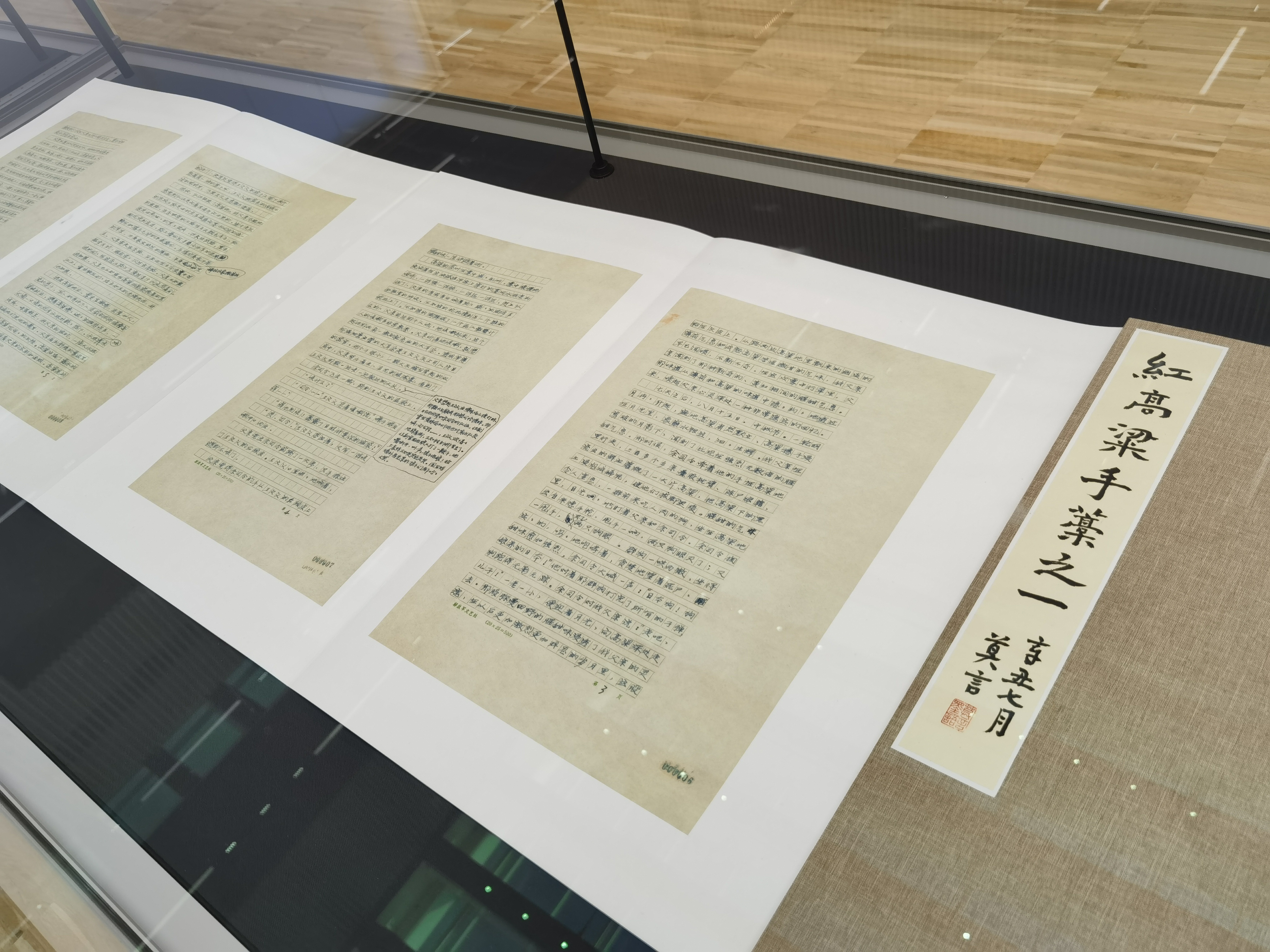本次纪念展主体设于上图东馆五楼中庭的两座白色展馆内及周边场地,展出了《红高粱》全本手稿,《太白若来》书法长卷,莫言的童年、军旅、家庭生活照片,以及具有重要纪念意义的作品出版节点。