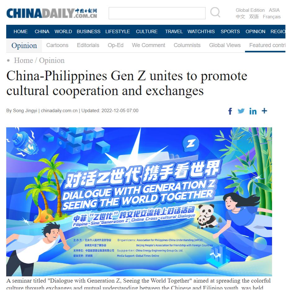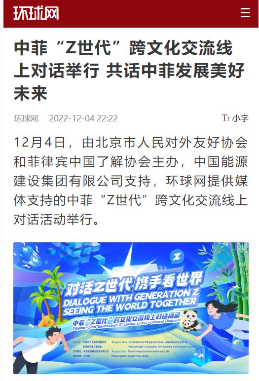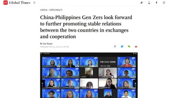 期间,中菲“Z世代”跨文化交流线上对话活动受到主流媒体广泛报道。