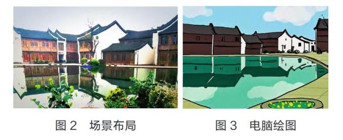 电脑绘画是信息技术在美术领域的应用,体现了科技的便捷性与实用性。教学前,教师为学生提供了多种形式的绘画素材(图画、照片等),帮助学生进行场景布局(如图2);讲解过程中,教师领着学生对参照图(原稿)进行解构,分析画面各部分的结构关系;实践过程中,教师借助绘图软件,引领学生对原稿进行临摹和发挥,表达作品蕴意,进而提高学生的鉴赏能力及电脑绘画能力(如图3)。