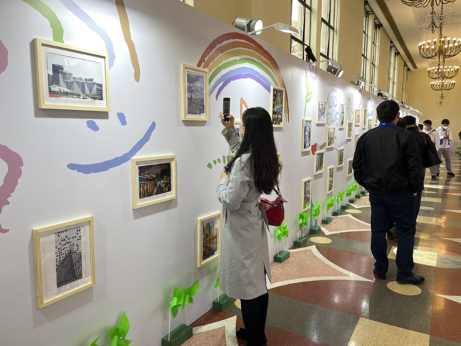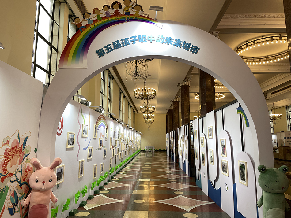 展览现场展示了各种绘画及摄影作品,呈现了孩子们心中对未来城市的想象。