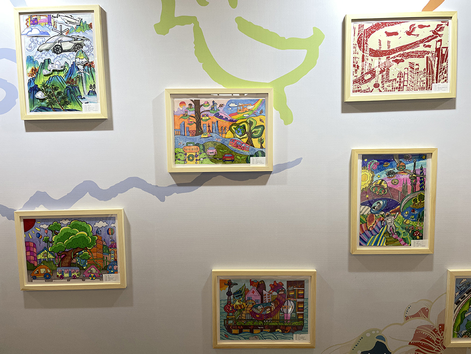 展会现场有一个特别的展示区——第五届“孩子眼中的未来城市”绘画摄影作品展,日前,展区现场举办了作品展开展仪式,吸引了众多参观者的驻足。