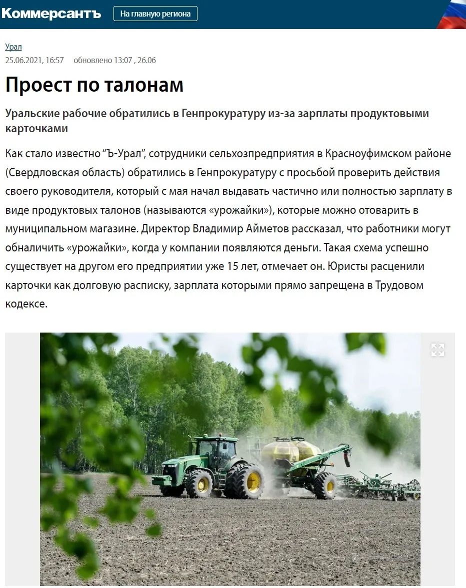 进入21世纪以来,“以券易物”这类形式曾可见于俄罗斯部分地区的工厂、村庄中。《生意人报》2021年就曾报道了斯维尔德洛夫斯克州的工人因不满于工厂发放食品券代替工资而上诉的案例,该工厂发放500、1000、2000面额的食品券,凭券可在当地商店购买部分物资,工厂负责人称其家族的另一家企业已经按照这种支付方式运行了15年。